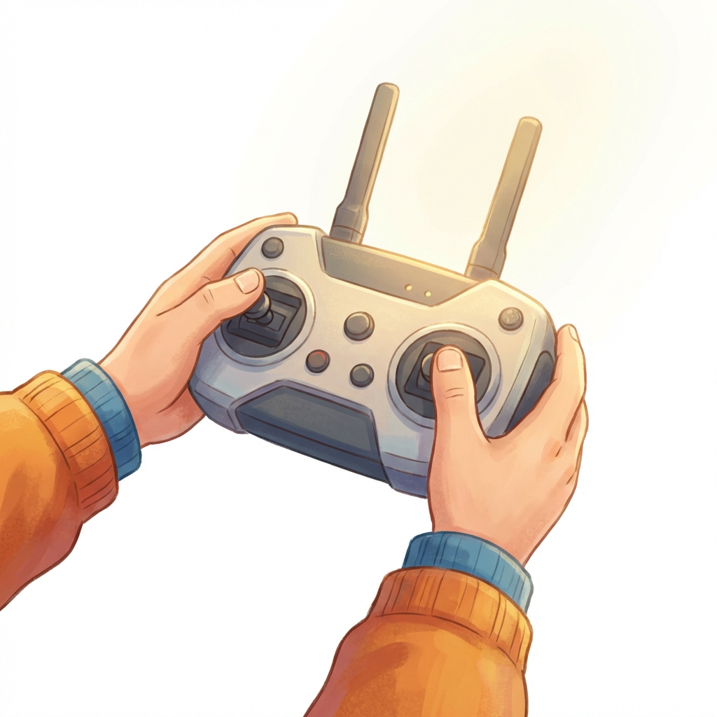 爸爸一按遥控器,无人机“嗡”的一声就飞起来了,像一只听话的小飞机,稳稳地飘在天上。我攥着遥控器,手都有点发抖,眼睛紧紧盯着它。